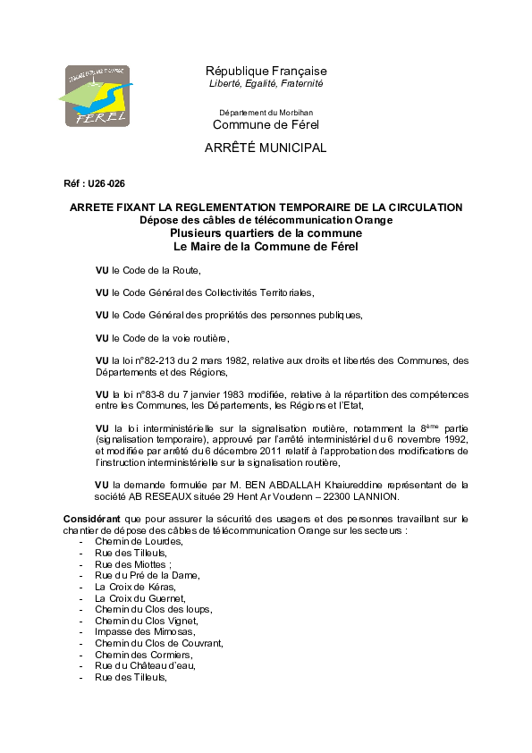 Du23marsà21avrilRéseau téléphone et internetFEREL - Dépose de câbles télécom orangeTéléchargerU26-026_ARR_CIR_AB_RESEAUX_dép_réseau_télécommunication.pdfPDF237,5 KoPrécédentRetour à la listeSuivant