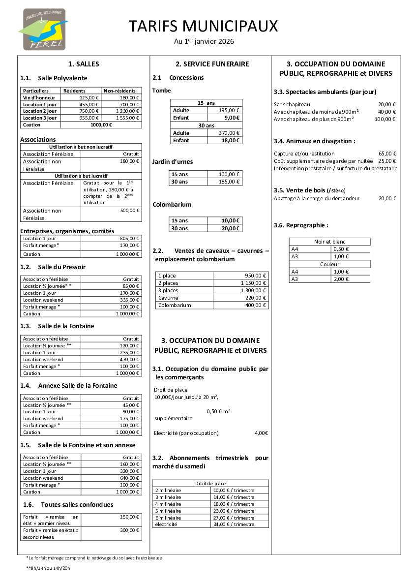 Dans la même rubriqueSelectionnez une rubriqueLes tarifs municipauxLocation de sallesOffres d'emploi et de stage à FérelEmploi, formation et réorientation sur Cap AtlantiquePresseLes tarifs municipaux